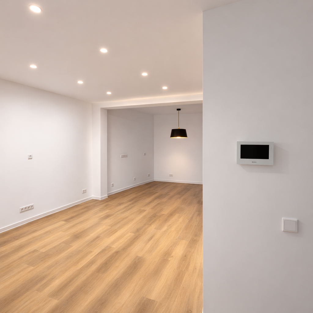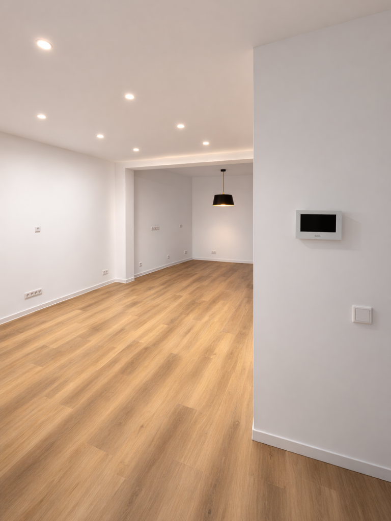 Die folgenden Aufnahmen zeigen Räume nach einer vollständig abgeschlossenen Elektrosanierung. Sämtliche Leitungen, Schalter, Steckdosen und Verteilungen wurden fachgerecht erneuert und an heutige Sicherheits- und Komfortstandards angepasst.